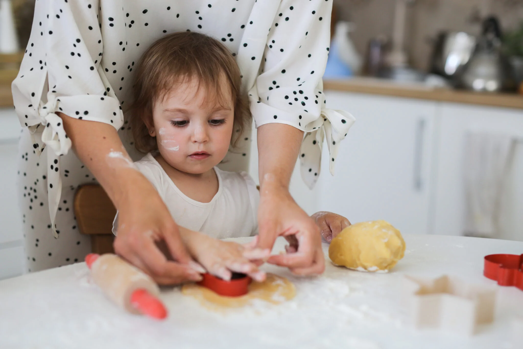 Kies voor een eenvoudig recept en laat je kleintje helpen waar het kan. Het deeg een beetje kneden, vormpjes maken … en uiteindelijk versieren. Geef hem/haar taakjes waarbij ze niet te veel geduld moeten beoefenen en laat vooral hun creativiteit de vrije loop. In een mum van tijd heb je een heerlijk tussendoortje klaar getoverd. Smakelijk